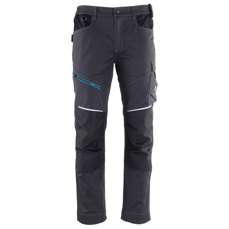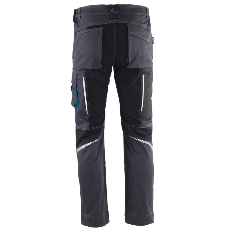 – Radne hlače Revolt 4STRETCH u sivoj boji sa petrol plavim i crnim detaljima;